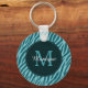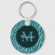 Stylish Teal Zebra Print With Monogram and Name Key Ring
