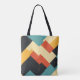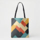 This stylish tote bag features a vibrant geometric pattern with rectangles and parallelograms in shades of teal, yellow, red, black, and beige. The black handles provide a comfortable and sturdy grip, making it ideal for everyday use, shopping, or as a thoughtful gift for friends and family. The unique and colourful design adds a touch of creativity to any outfit.