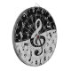 A stylish and eye-catching pattern of random musical notes in black and white with a large treble clef in the centre. The bottom of the design features black music notes on a white background with the top featuring white music notes on a black background. The large clef changes from black to white in colour half way.