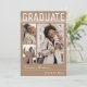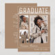 Trendy, modern and stylish graduation announcement cards, featuring design elements of modern text with handwriting signature script. Three graduate photos highlight the front of the card with "Graduate" accented in a sleek white gradient. The back of the card offers personalised text spaces for information about your graduation and future journey. White writing on chic taupe beige or easily customise the background to match your school's primary colour or any colour of your choice. Perfect for the high school, college and university grad.