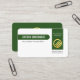 A white cover is accentuated by a dark green tab layer with a corresponding vertical piece to its right. Your prestigious name is housed inside the green tab alongside the job title. The vertical layer has the business name, a gold global logo you can use with an optional slogan caption at the base.