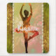 A watercolor painted ballerina posing on a pastel flowery backdrop where you can personalise it on the tutu joined by a necklace border where on the sides are lotus petals on a deep green and orange backround for extra style. Girly dancer vibes.