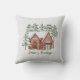 Celebrate the season with this cosy, hygge throw pillow featuring a watercolor scandi house framed by pine trees and a festive green wreath. The greeting is printed in traditional green Nordic festive wreath style, using elegant serif typography for a timeless look.
