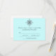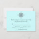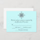 Elegant wedding response card, in light teal with a silver tone decorative embellishments at the top. Customise the text to suit your needs.