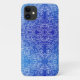Stylish white Floral pattern swirl on blue Case-Mate iPhone Case