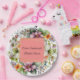 Pretty bridal shower paper plates done in white, with colourful wildflowers. A coral and gold text area, in the centre has custom black text. Personalise the text to suit your event needs.