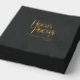 Add a touch of luxury to your Halloween or a spooktacular birthday celebration with these simple, minimalist black napkins. Featuring elegant real gold foil script that reads “Hocus Pocus,” paired with clean, easy-to-read typography for your personalised name and date, these napkins blend style and function perfectly. Ideal for witch or wizard-themed luxury glam birthdays, magical witches’ nights out, or upscale Halloween parties, they bring a sophisticated, festive flair to any table setting. Crafted to impress, these chic black and gold napkins make your celebration memorable while complementing your themed décor. Personalise them for a magical, stylish finishing touch.