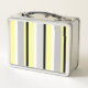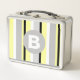 Stylish Yellow and Grey Striped Monogram Metal Lunch Box