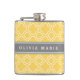 Stylish Yellow Quatrefoil Pattern with Name Hip Flask