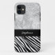 Stylish zebra print custom photo iPhone 5 case features black and white zebra stripes and black accent border frame for your name, initial or other text. Add your favourite photo! Show your personality with this trendy and unique iPhone 5 case. Makes a great gift for all occasions. Click the "Customise it!" button to change the text size, text colour, font style and more!