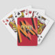 A deck of stylish playing-cards personalised with his name and surname in cool font styles, over a red background colour, and with big oversized initial letters with black shadows... a modern monogrammed design, with the name of the stylish player.