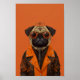 This quirky and stylish artwork features a charming pug dressed in a steampunk-inspired leather jacket, accented with Halloween-themed designs in vibrant orange and black. The pug's playful expression is enhanced by its retro goggles and the adorable spider sitting on top its head, giving it a mix of cute and edgy. The bright orange background adds a bold pop, making this piece perfect for anyone who loves dogs, steampunk fashion, or unique Halloween themed decor. This print will bring character and a dash of humour to any space.