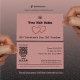On the back, the left side includes a "Scan and Arrange!" CTA, a QR code for easy appointment scheduling, a tracking ID, and an invitation to “Follow” the salon’s social media Valentine's Hashtag. To the right, the physical contact details are horizontally centred to the QR code, with virtual connections aligned to the social media block.