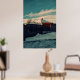 Stylized Winter Snow Teal Sky Landscape Art Poster