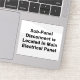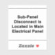 A sticker label with the words "Sub-Panel Disconnect is Located in Main Electrical Panel" printed in black letters on a white background. This is something electricians would find useful.