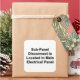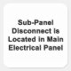 A sticker label with the words "Sub-Panel Disconnect is Located in Main Electrical Panel" printed in black letters on a white background on a sheet of SIX STICKERS