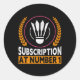 Subscription At Number 1 Funny Badminton 1 Classic Round Sticker