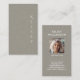 Elegant and classic, vertical white script font business card with customisable photo. Subtle and minimalist faux fabric texture grey linen texture on front and back.