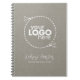 Elegant and classic personalizable white script font notebook with customisable logo. Subtle faux fabric texture grey linen texture. Simple Minimal Design