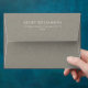 This envelope features a modern, minimalist design with a classic white script font on a faux grey linen texture. Elegant and understated, it’s perfect for both personal and professional use. Customise with your name, address to add a touch of sophistication to your correspondence.