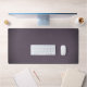 Subtle flowy scripted name on lightly vignetted mottled dusty plum purple desk mat that gives a look of faux suede.