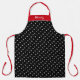 This full-print apron features white polka dots on black with a subtle red section at the top for your personalised first name.