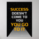 Motivational poster. Success doesn't come to you you go to it. Open space, starry sky style. Print design. Dark background