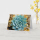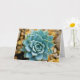 Rich with spiky texture, this aqua, seafoam green succulent is planted in a bed of tan pebbles.