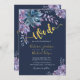 Beautiful watercolor succulents in shades of purple, navy and greens with faux gold foil "we do" and on the back "wedding". Great for a wedding any time of the year with a botanical feel. Can change background colour with colour picker.