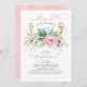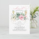 Gold leaves succulents greenery and pink flowers brunch and bubbly bridal shower invitations
