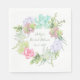 Add a touch of desert charm to your table decor with a design that captures the modern beauty of desert botanicals, making it ideal for a chic and memorable bridal shower suite. This napkin features a lovely watercolor wreath, meticulously crafted with succulents in a delightful array of pale green, rich dark green, and delicate pink hues. These vibrant succulents pop beautifully against a white background, creating a sophisticated and harmonious palette. Easily change the details to your own and if you would like to, change the font style, size, colour and placement.
