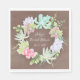 Add a touch of desert charm to your table decor with a design that captures the modern beauty of desert botanicals, making it ideal for a chic and memorable bridal shower suite. This napkin features a lovely watercolor wreath, meticulously crafted with succulents in a delightful array of pale green, rich dark green, and delicate pink hues. These vibrant succulents pop beautifully against a soft brown background, creating a sophisticated and harmonious palette. Easily change the details to your own and if you would like to, change the font style, size, colour and placement.