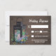 Succulent Rustic Wood Lantern Wedding RSVP Cards