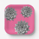 Grey succulents dance across a hot pink background on this eye-catching paper plate.