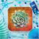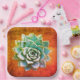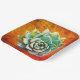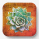 An aqua succulent with a hint of lavender is framed by a fiery background of rusty orange. These eye-catching plates will be sure to brighten up any celebration.
