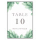 Succulent Wedding Table Number. Customisable grey text decorated with gorgeous watercolor succulent print in pale shades of green on white. Add the bride and groom's names, wedding date, and desired table number.