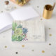 Unique fonts, colourful watercolor succulents and rustic wooden plank backgrounds are the highlights of these mix-and-match wedding products.This beautiful wedding guest book has foliage corner borders on a light, weathered wood background. A template is provided to enter your personal message, bride and groom's initials and wedding date that are centred in a small label on the back. Search ID515 to see all the matching products in this set.
