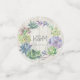 Unique fonts, colourful watercolor succulents and rustic wooden plank backgrounds are the highlights of these mix-and-match wedding products. This beautiful confetti design has a central succulent wreath along with a template to edit the bride and groom's names and wedding date with a wood background on the reverse. Search ID515 to see all the matching products in this set.