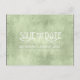 Unique fonts, colourful watercolor succulents and glittery backgrounds in a soft spring green are the highlights of these mix-and-match wedding products. This wedding 'Save the Date' postcard provides a template to add your own names, wedding date and message in an easy format for return mail. A shiny, textured pattern, in light and dark tones of spring green, adds a contrasting background on the reverse. Search ID515 to see all the matching products in this set.