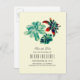 floral save the date postcard with succulent plants bouquet. Teal colour.