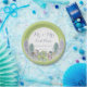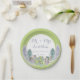 Beautiful succulents and peacock feathers wedding paper plates with a border of vintage green, white centre with a spray of succulents and peacock feathers of teal and lavender with an area you can add the couple's first names, last name, and wedding date! These trendy, modern succulent and peacock feathers design wedding paper plates are great for the wedding reception, also for bridal showers, rehearsal dinner, or couple's showers!