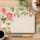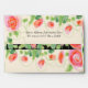 Wedding envelope with a pretty floral design. The black stripe can be changed to any colour when selecting the envelope colour and size. The return addess label area on back top flap can be personalised with your from or return address information, or simply use a label and remove text all together. Text is removable. Be sure and look at the matching wedding invitation with this pretty flowered print.
