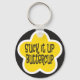 Suck it Up Buttercup funny motivational saying in fun font on yellow flower background. Humourous keychain for a gift or as a reminder to yourself!