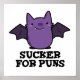 Sucker For Puns Funny Baby Bat Pun features a cute baby bat proud to say that he's a sucker for puns. Perfect pun gift for family and friends who love cute bat puns.