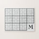 Sudoku Monogram jigsaw puzzle for avid puzzle lovers. This is a fun SUDOKU jigsaw puzzle for men and women who love Sudokus AND jigsaws. The simple, black and white design shows a series of incomplete Sudoku puzzles, with a CUSTOMIZABLE MONOGRAM in the bottom right hand corner. This would make an ideal gift for the Sudoku/jigsaw enthusiast in your life.