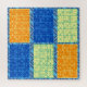 Colourful sudoko puzzles against a patterned background is a fun design for birthdays and holidays. The two similarly coloured puzzles are answers for each other.