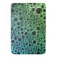 A black bath mat featuring soapy bubbles and soap suds. A fun change from the usual. Done in turquoise and green.