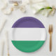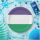 This design features the flag of the suffragette movement, which in the 20th century fought for the right to vote in public elections, known as women's suffrage. The term "suffragette" was first coined to belittle the movement, but the women involved soon accepted and embraced the new name as a sign of their refusal to accept male-only elections. The movement continues to inspire feminist and other political campaigns today.