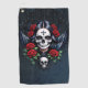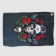 Sugar Skull Angel with Roses. Captivating figure that embodies the perfect symbiosis of gothic aesthetics and romantic flair. The focus is on a woman with elaborate sugar skull make-up that shines in vibrant colours and shows delicate patterns on her face. Her large, expressive eyes captivate the viewer and convey both strength and vulnerability. A delicate pattern of hanging pearls gives the scene an additional dimension and makes it seem almost like a dream. a design where beauty and darkness merge harmoniously.
