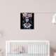 Transport yourself to the lively celebrations of Dia de los Muertos with this captivating design featuring a woman adorned in stunning sugar skull makeup. The vibrant colours and intricate details pay homage to the rich traditions of the Mexican holiday. Embrace the beauty and symbolism of this cultural phenomenon with this eye-catching design that captures the essence of Day of the Dead festivities.